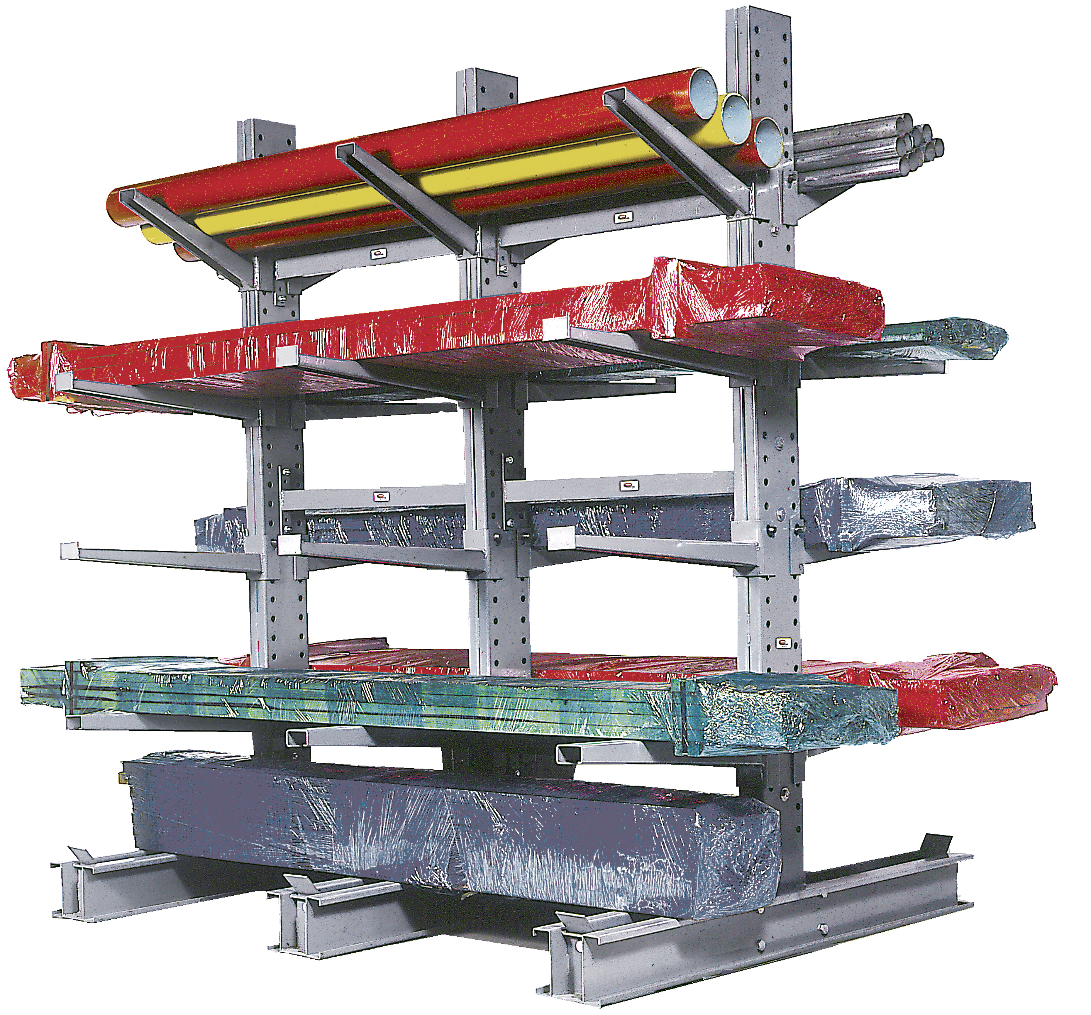 Makes efficient, time-saving work of storing long or awkward lengths of pipe, bar, tubing, lumber, poles, etc. Forklift easily loads on or off arms and bases. Bases can be used for extra storage. For longer materials, simply add braces and upright columns to fit your needs. Arms are adjustable 3" up and down the full length of the upright. Uprights are punched on both sides for use as single-sided or double-sided units. All rugged heavy-gauge steel construction for sure, safe support of heavy loads and long life. FOB Shipping Point.